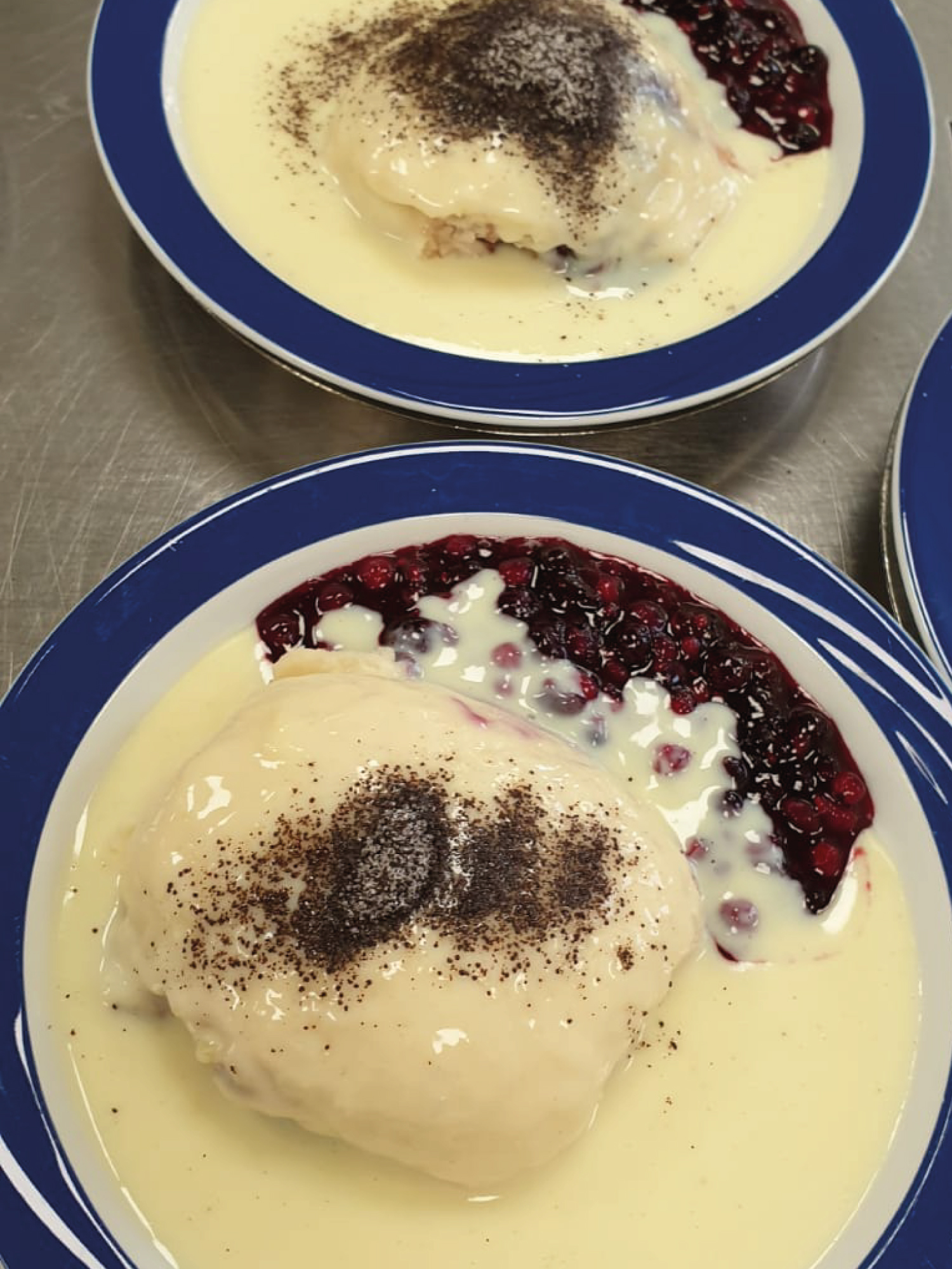 Unsere Küche kocht täglich selbst vor Ort, frisch und abwechslungsreich. Wir verköstigen unsere rund 170 Bewohner und rund 60 Externe durch Sida´s Essen auf Rädern. Zudem kommen rund 6 Externe täglich zum Mittagstisch. Wir bieten Montag bis Sonntag einen offenen Mittagstisch für Bürgerinnen und Bürger an. Damit wollen wir v.a. Senioren, die für sich nicht mehr selber kochen können, Hilfe anbieten. Unser Angebot richtet sich generell aber an jeden Bürger.